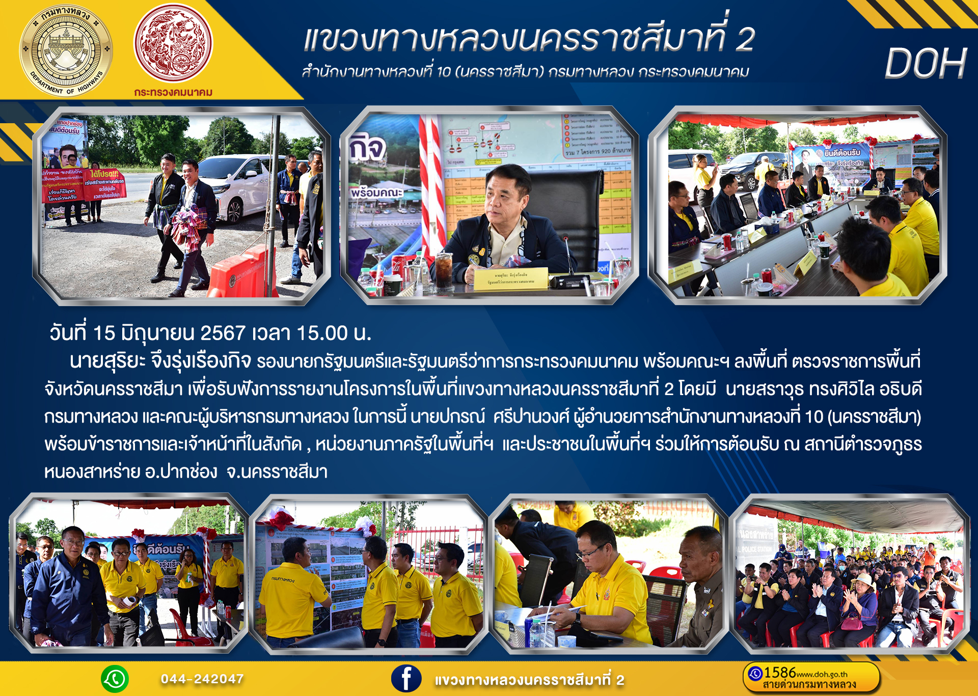 แขวงทางหลวงนครราชสีมาที่ 2 ประชาสัมพันธ์ การประชุมการมีส่วนร่วมรับฟังความคิดเห็นของประชาชน โครงการก่อสร้างทางแยกต่างระดับจุดตัดทางหลวงหมายเลข 2 กับ ถนนเข้าเมืองสีคิ้ว จ.นครราชสีมา