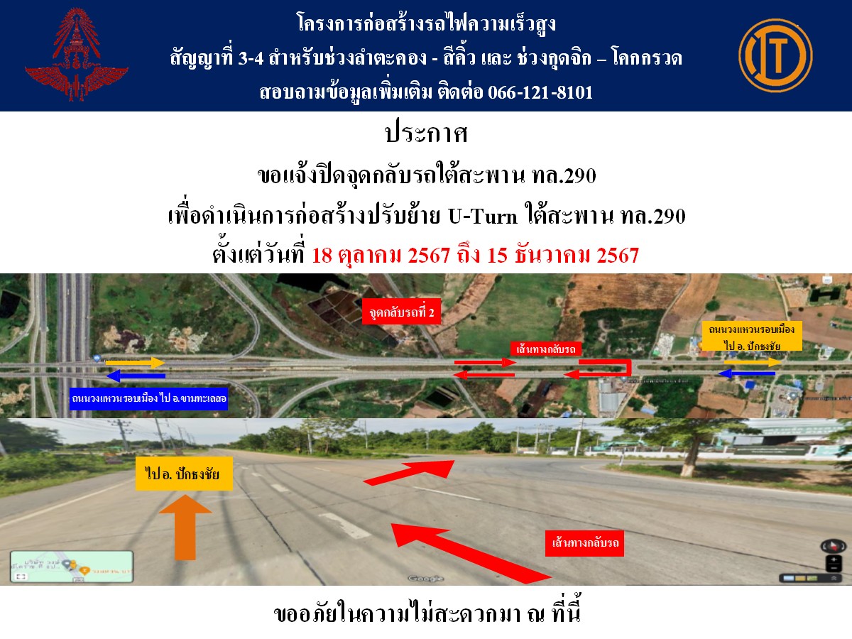 แจ้งปิดจุดกลับ (ชั่วคราว) บริเวณใต้สะพานทางหลวงหมายเลข 290 จ.นครราชสีมา