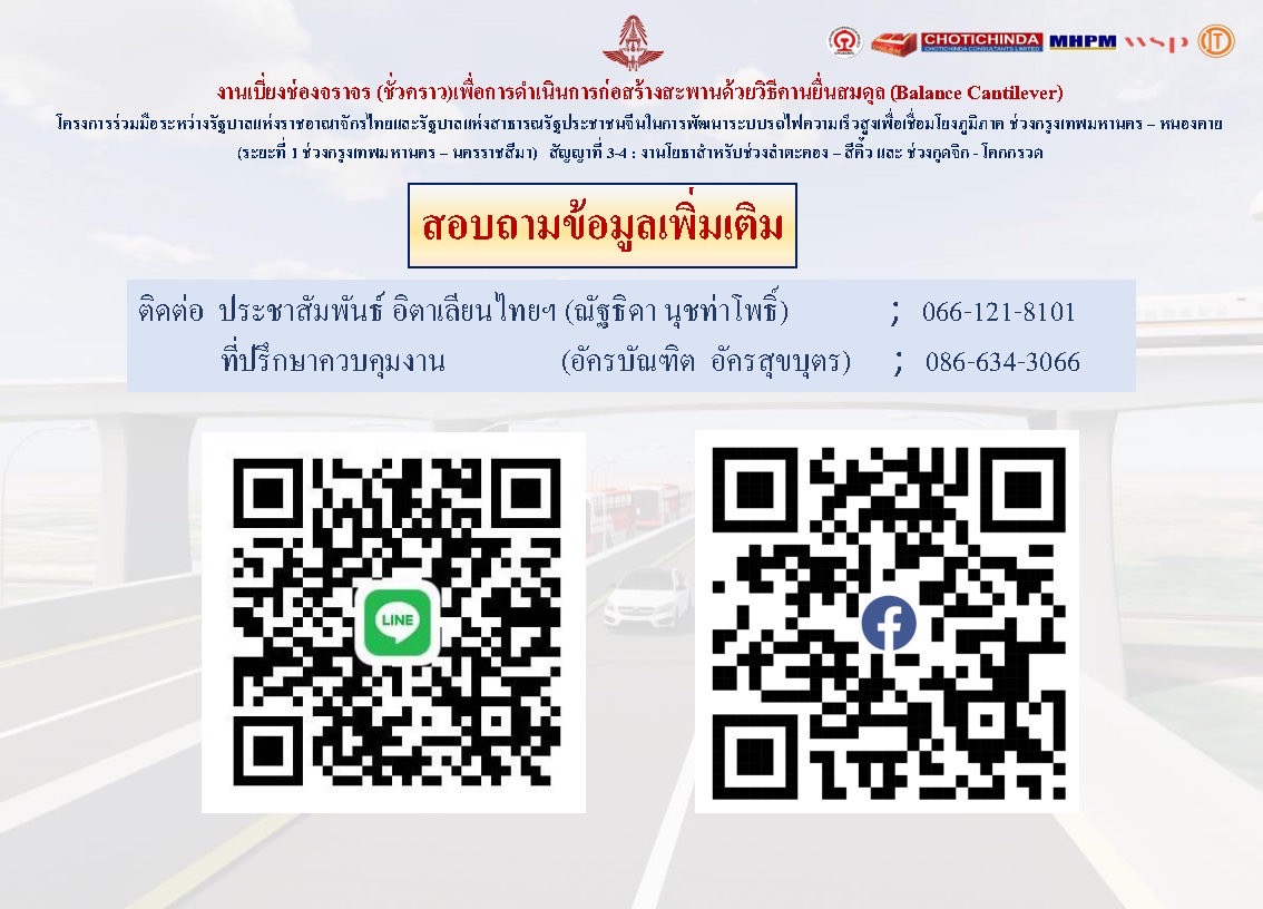 ประชาสัมพันธ์กำหนดการงานเบี่ยงช่องจราจร (ชั่วคราว) เพื่อดำเนินการยกโครงเหล็กงานหล่อคอนกรีตสะพานด้วยวิธีคานยื่นสมดุล