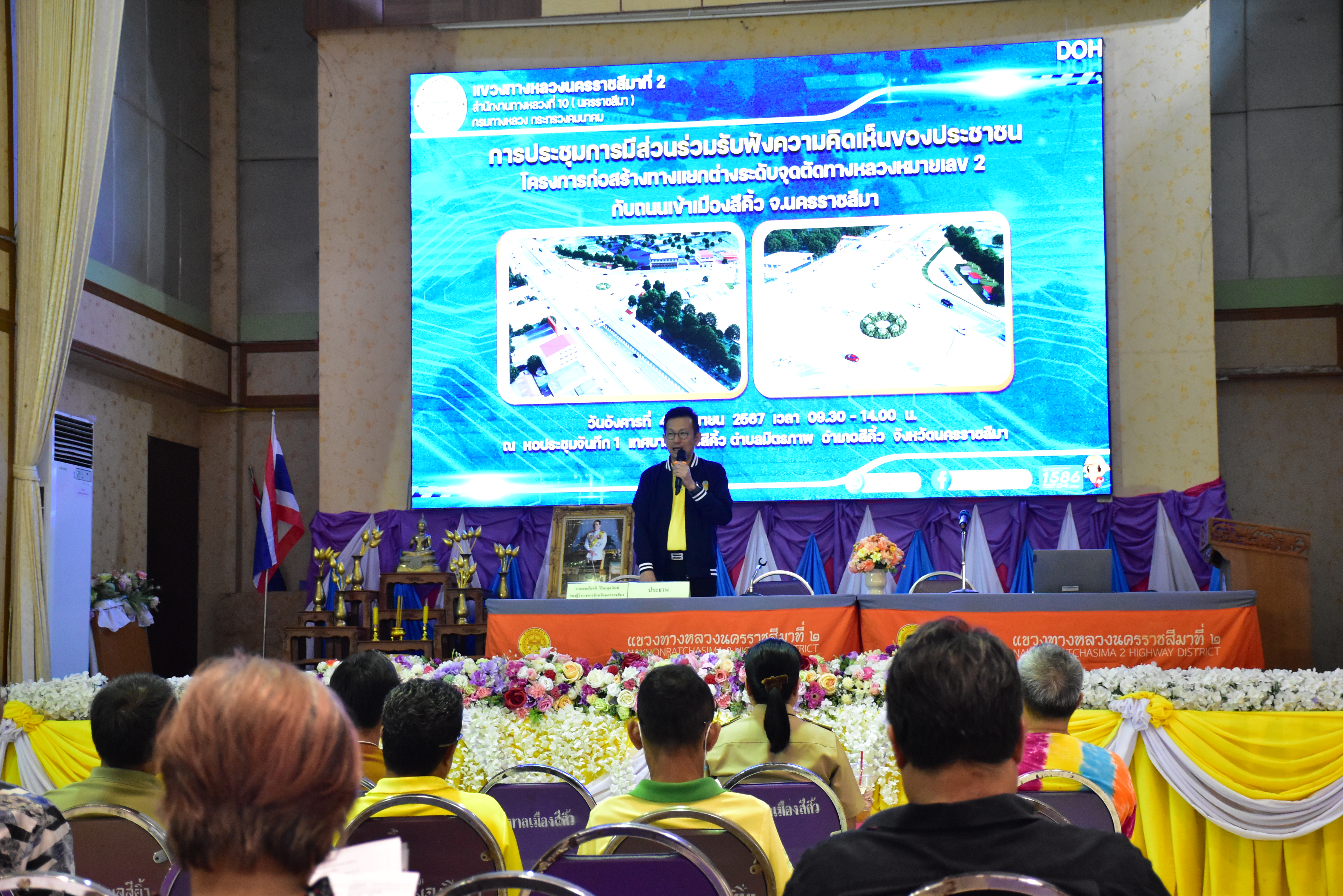 ได้ดำเนินการจัดประชุมการมีส่วนร่วมรับฟังความคิดเห็นของประชาชน โครงการก่อสร้างทางแยกต่างระดับจุดตัดทางหลวงหมายเลข 2 กับ ถนนเข้าเมืองสีคิ้ว จ.นครราชสีมา ทางหลวงหมายเลข 2 ตอนควบคุม 0203 ตอน มอจะบก - ไร่โคกสูง ระหว่าง กม.103+350 - กม.106+400 ณ หอประชุมจันทึก 1 เทศบาลเมืองสีคิ้ว ตำบลมิตรภาพ อำเภอสีคิ้ว จังหวัดนครราชสีมา โดยมี นาย นายสมเกียรติ วิริยะกุลนันท์ รองผู้ว่าราชการจังหวัดนครราชสีมา เป็นประธานในการประชุม