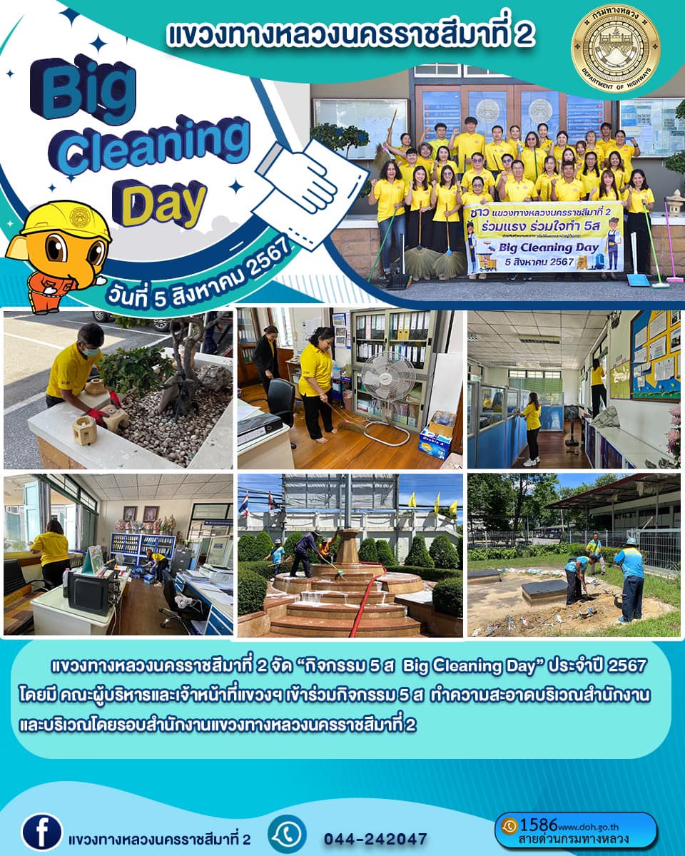 แขวงทางหลวงนครราชสีมาที่ 2 จัด “กิจกรรม 5 ส Big Cleaning Day” ประจำปี 2567